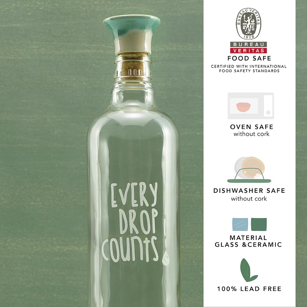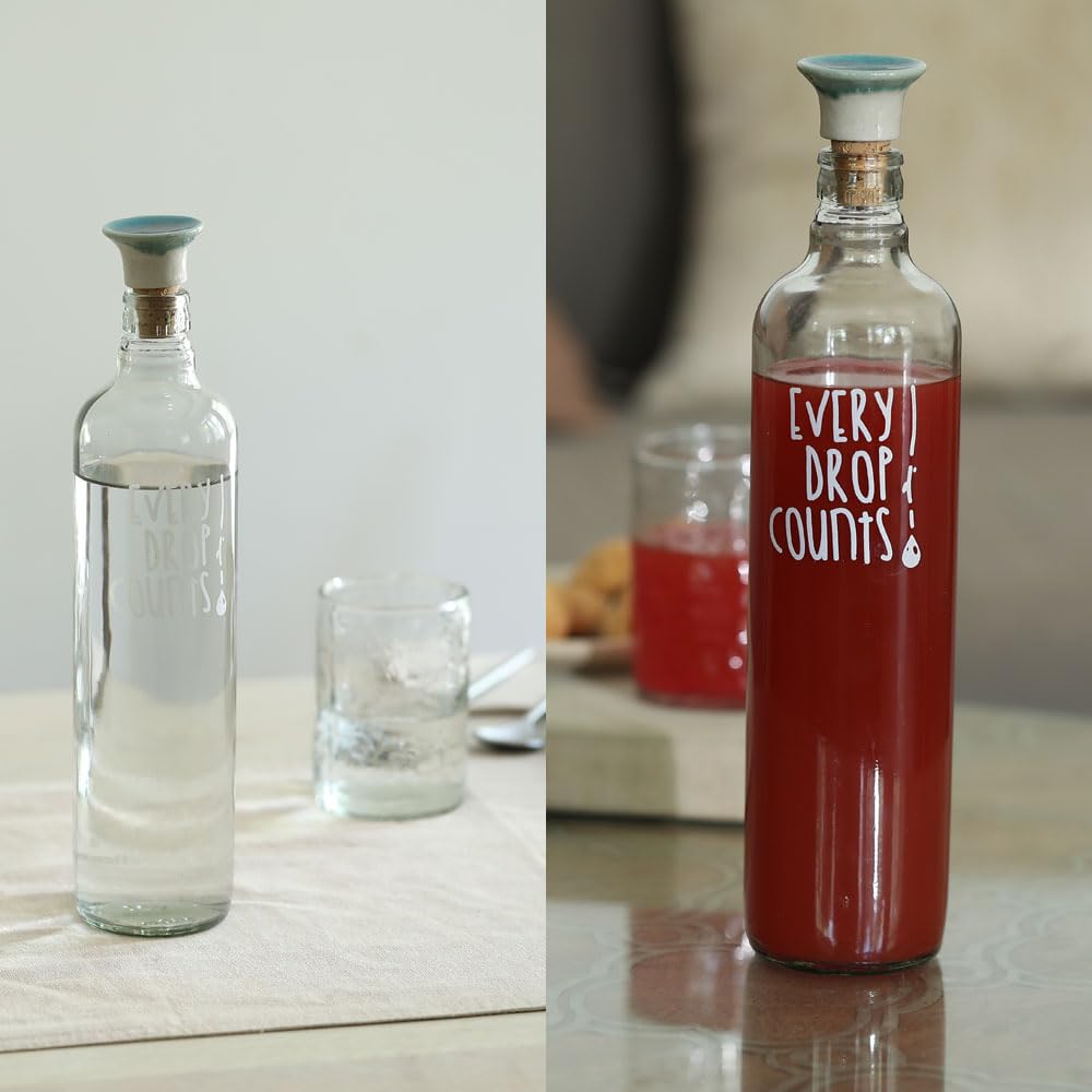 Handcrafted Piece:- Give your tableware an elegant feel with our glass water bottle that comes with a secure ceramic bottle stopper. The set is handmade using quality and thick glass and ceramic material, making it durable for long term use.