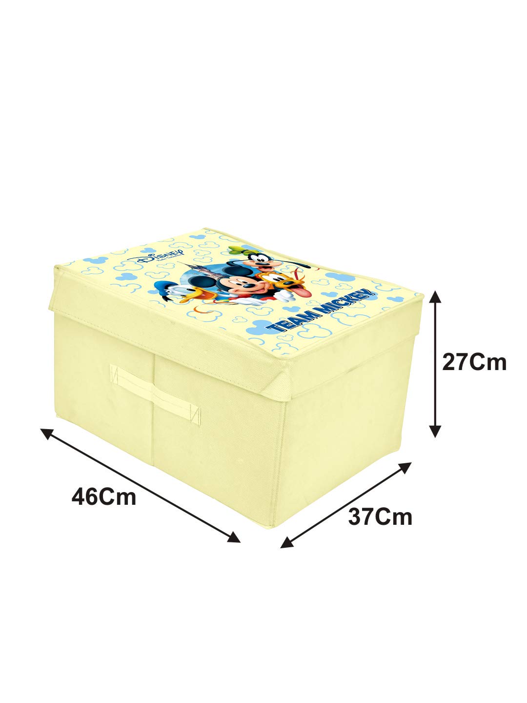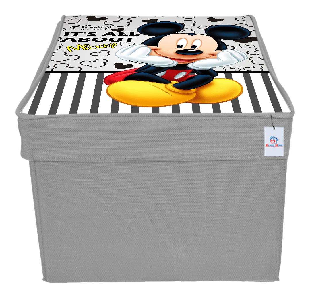 Disney Team Mickey Print Non Woven 2 Pieces Fabric Foldable Saree,Shirt Cover Storage Organizer Box with With Lid, Extra Large (Grey & Cream)-HHEART16338