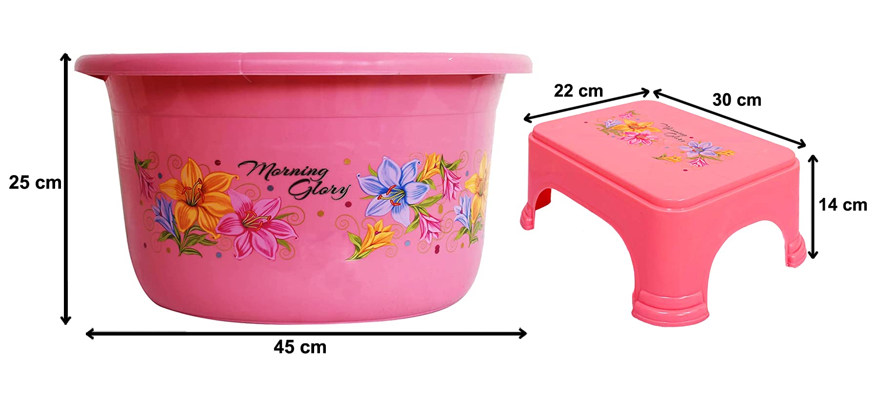 2 Pieces Plastic Tub & Stool Set