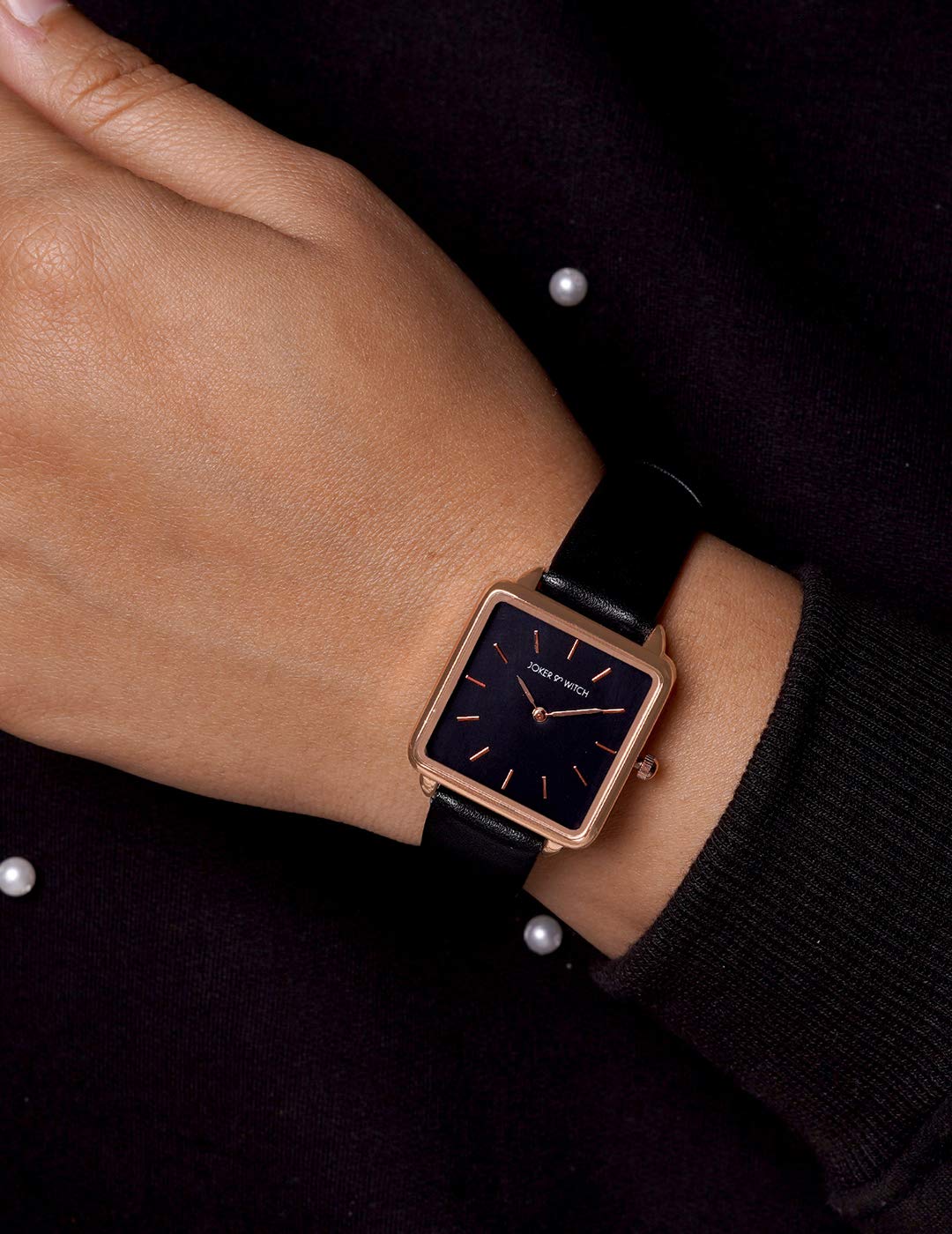 Joker & Witch Emily Square Dial Rosegold All Black Watch For Women