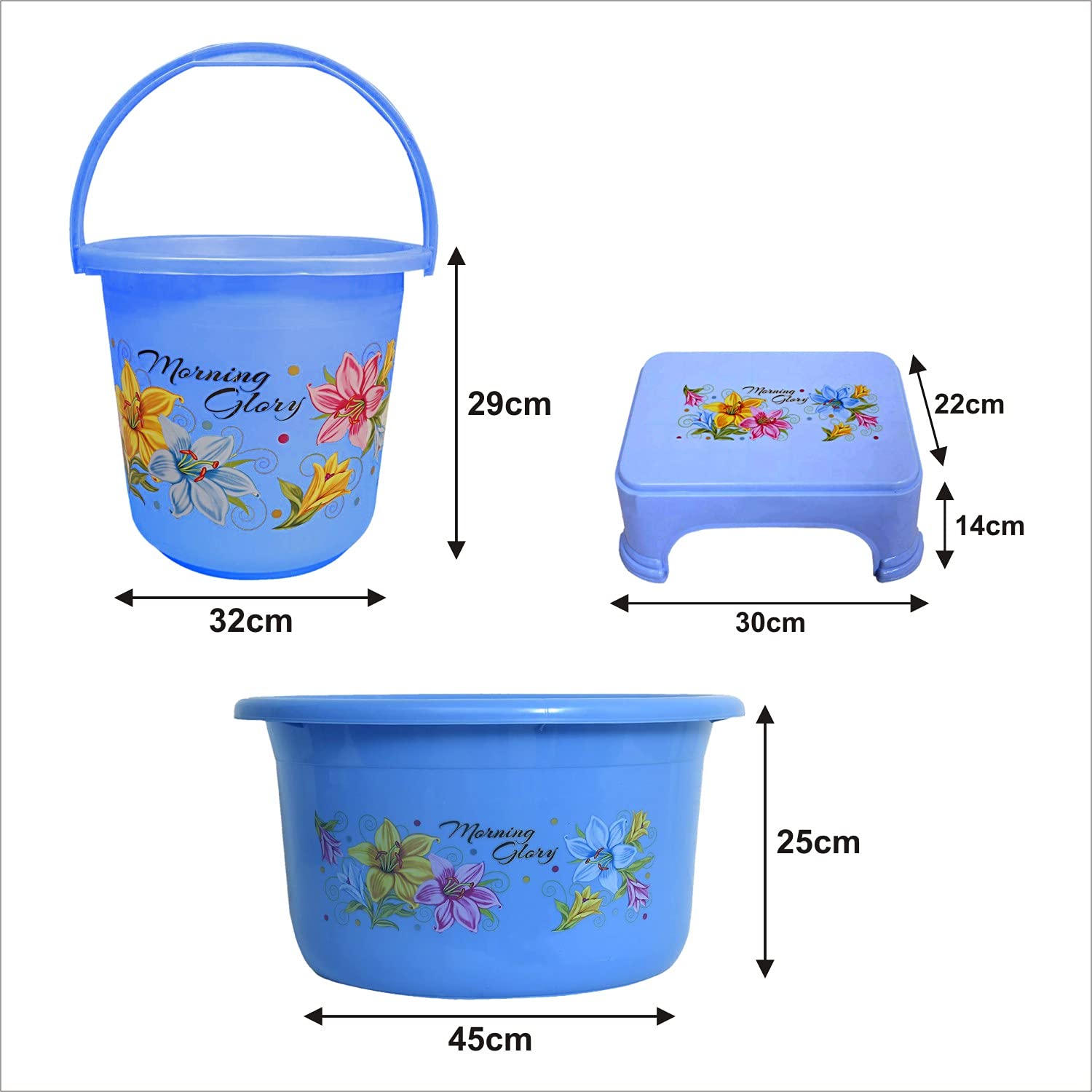 3 Pieces Bucket, Stool & Tub Set