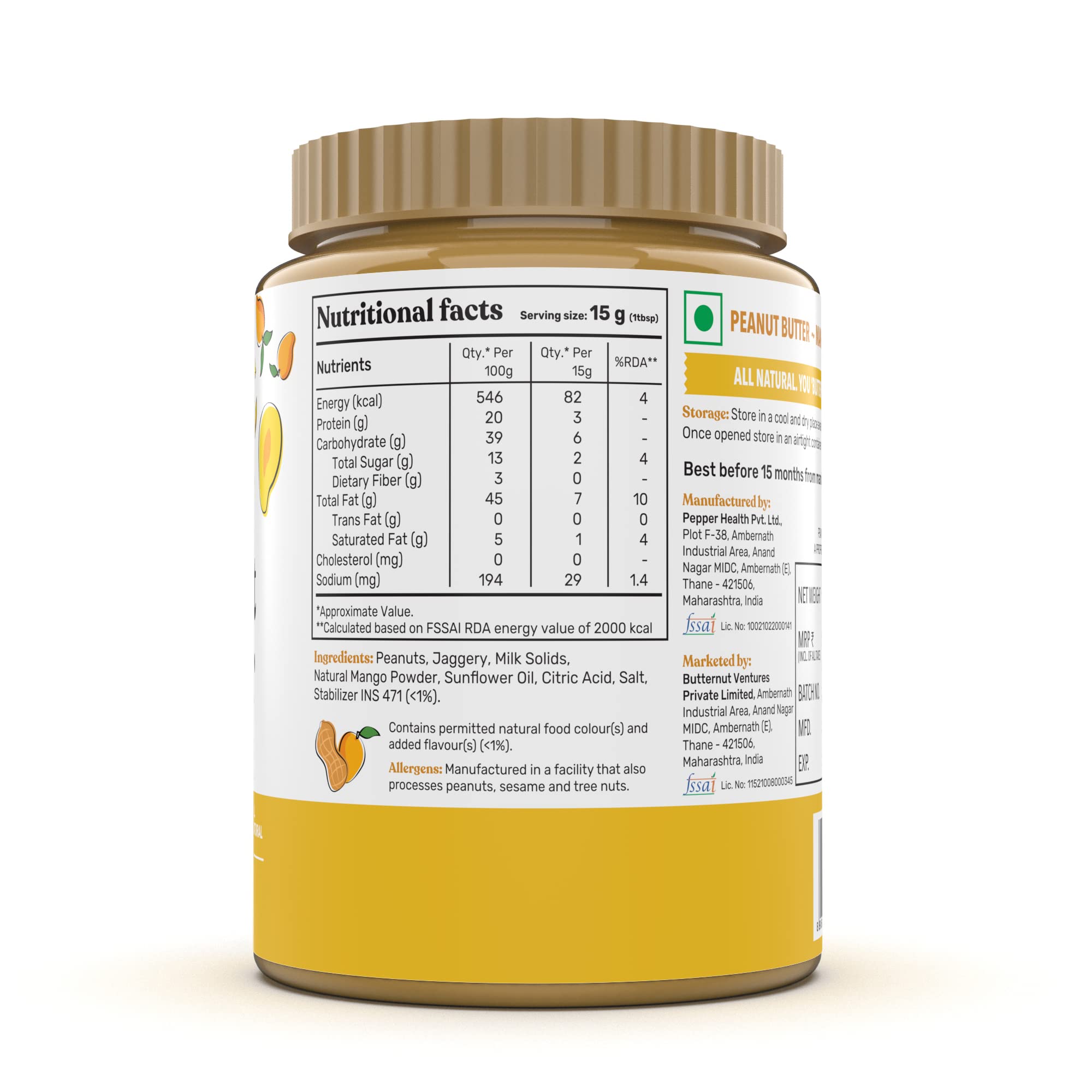 Peanuts, Jaggery, Milk Solids, Natural Mango Powder, Sunflower Oil, Citric Acid, Salt, Stabilizer, Contains Permitted Natural Food Colour(S) And Added Flavour(S) INS 471 (<1%)