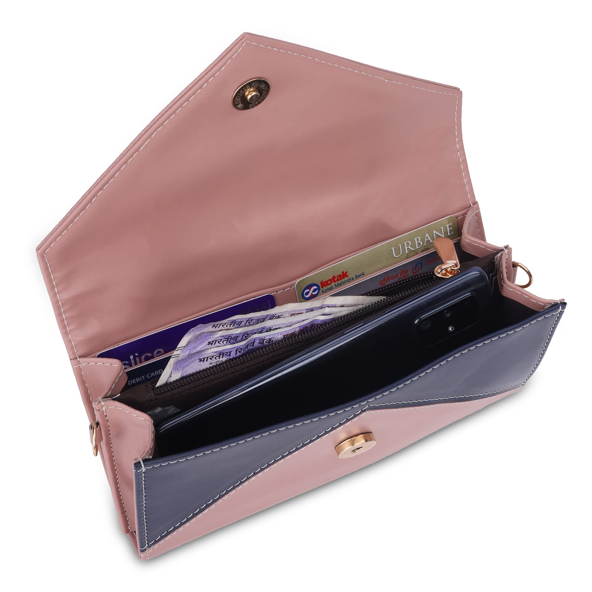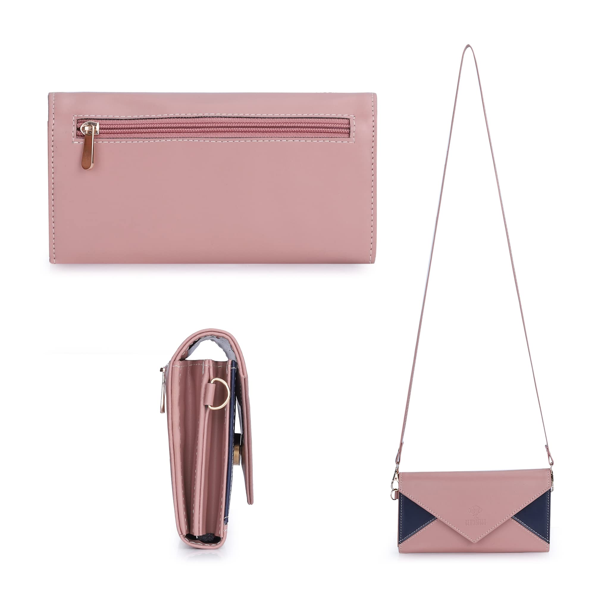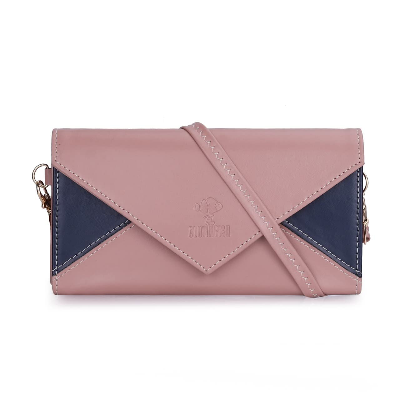 The Clownfish Asmi Collection Ladies Wallet Purse Sling bag with Shoulder Belt (Peach)